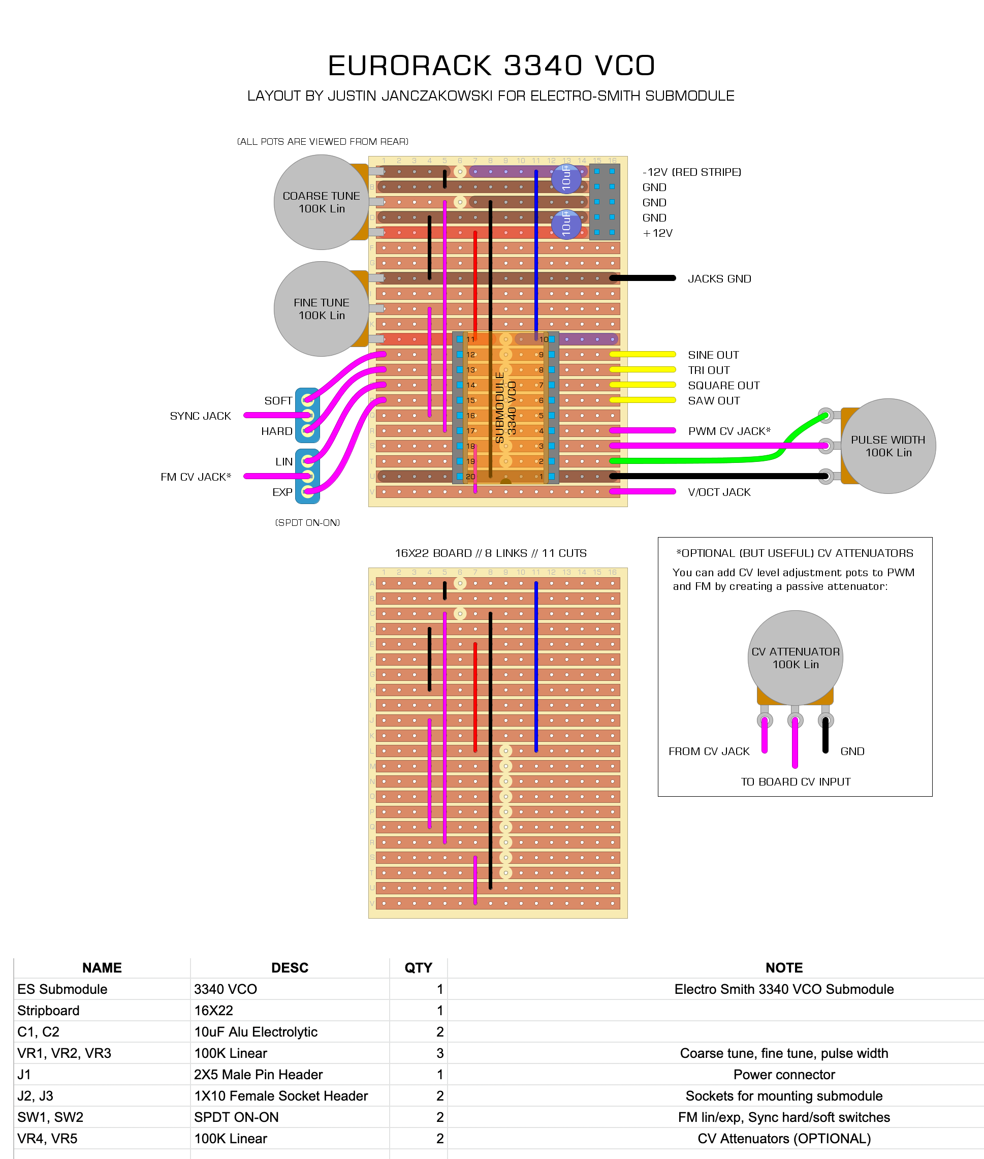 This AS3340 VCO build has everything you can possibly need from a classic analog VCO (imho). I used a verified stripboard layout and the electrosmith submodule: Link