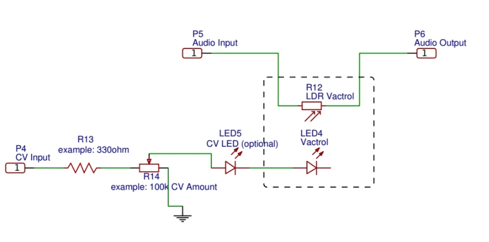 This module was a long time in my Rack but is currently not part of my setup because of bleedthrough issues. I built a better version for my portable setup. A lot of testing regarding vactrols components were done. And the best combination for lowpassgates and vactrol-VCAs in my opinion are 5549 LDRs and diffuse red 5mm LEDs in two or three layers of black shrinkwrap. I guess I will make a post that describes my process in detail.